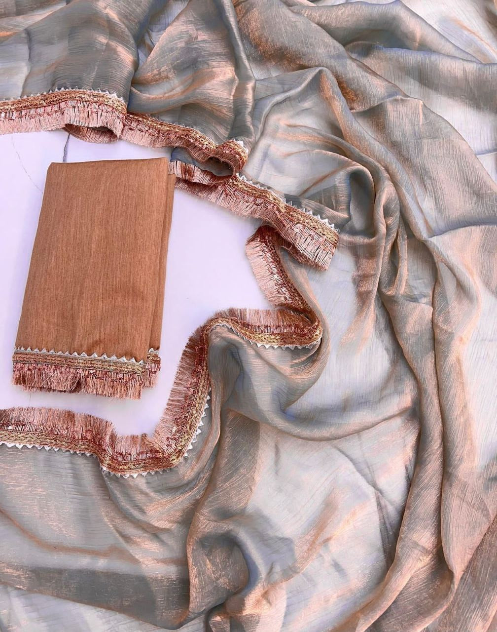 Grey Glossy Chiffon Saree