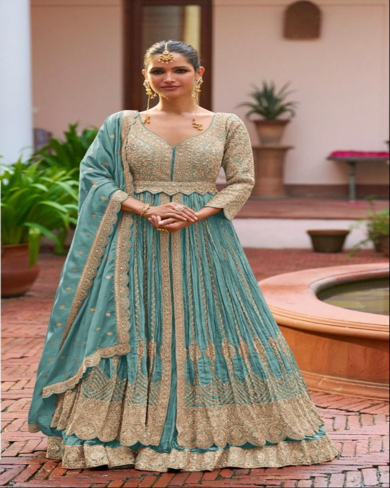 Teal Green Long Top Lehenga